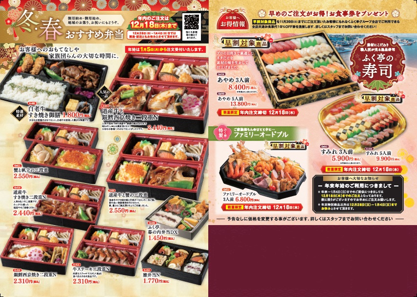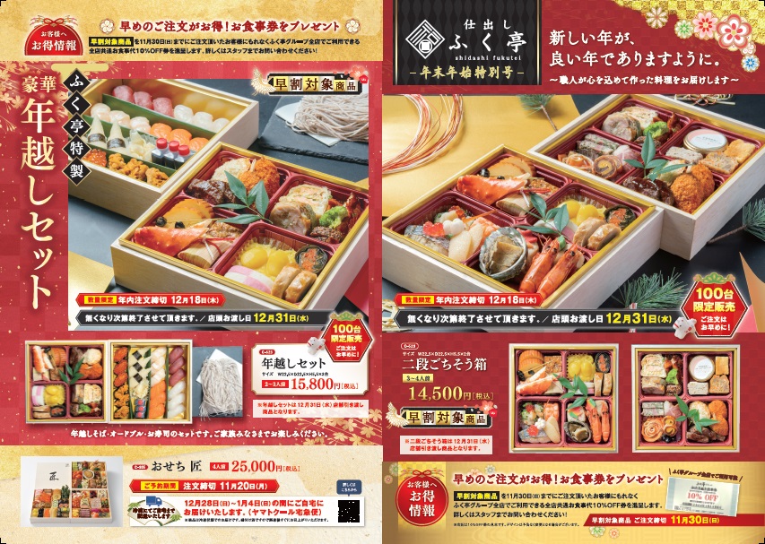 年末特別メニューと、ご利用についてお知らせさせていただきます。